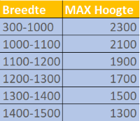 Let op: Maximale breedtes & hoogtes (afhankelijk van de gekozen breedte)