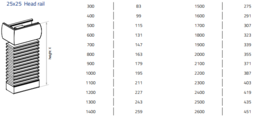 Hoogte jaloezie Pakkethoogte Hoogte jaloezie Pakkethoogte