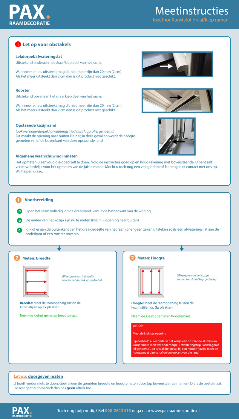Inzethorren zijn specifiek bedoeld voor draai-kiepramen (ook wel kiep-kantelramen genoemd) van kunststof. Deze inzethor is niet geschikt voor ramen die alleen naar buiten of binnen kunnen draaien. Heeft u een naar buiten draaiend raam? Dan raden we een rolhor of een voorzethor aan. Heeft u een naar binnen draaiend raam? Dan zou een rolhor (aan de buitenzijde) een mogelijkheid kunnen zijn. Advies nodig? Bel gerust of maak gebruik van onze inmeetservice aan huis.