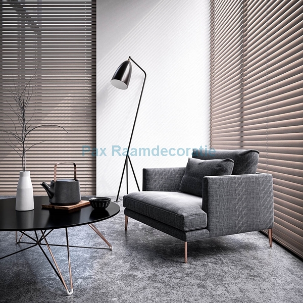 De lamellen van het jaloezie zijn 25, 35 of 50 mm breed en gemaakt van hout.