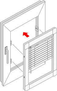 - Of clips (voor kunststof of aluminium kozijnen met raamrubber waarop het frame is te klikken)