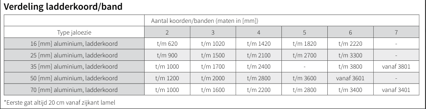 Afhankelijk van de breedte zijn er meerof minder ladderkoorden.