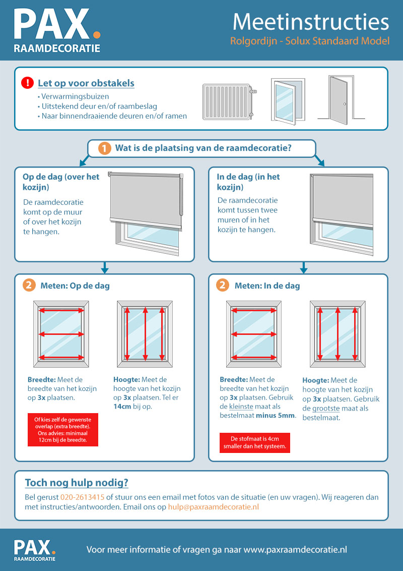 Afmetingen rolgordijnen