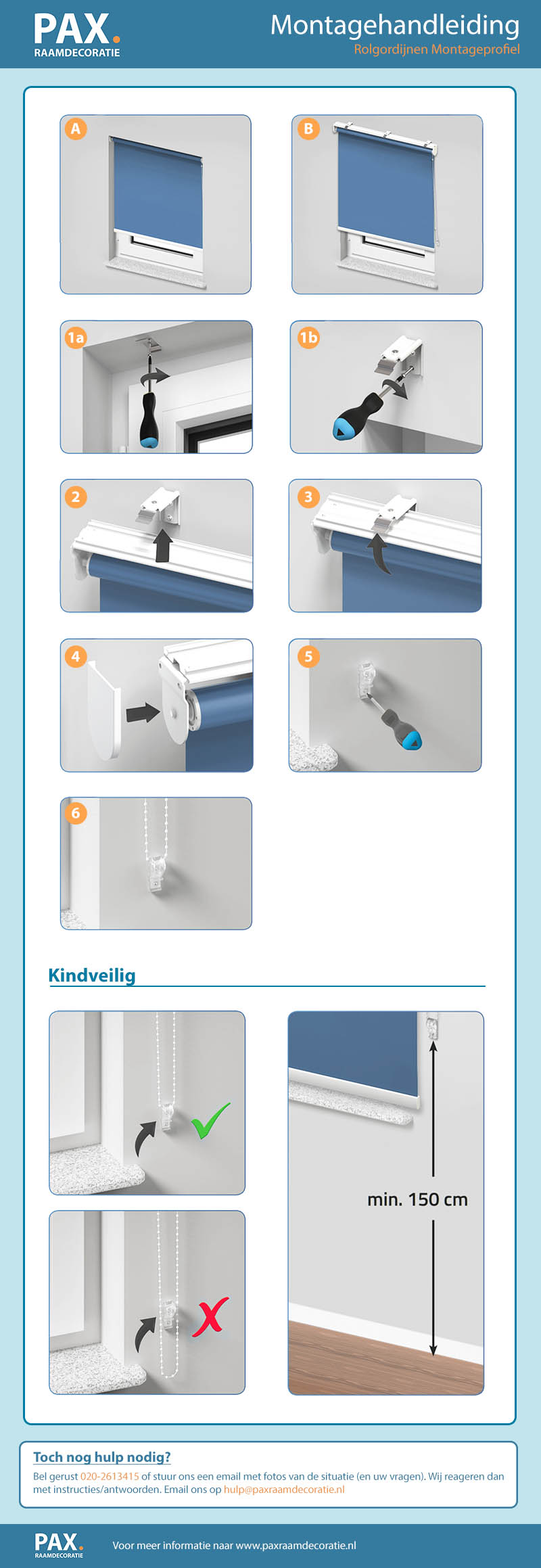 Zeer handige & gemakkelijke montage en geschikt voor nagenoeg elke situatie. Over de gehele breedte van het rolgordijn kan het product gemonteerd worden. Voordelen: