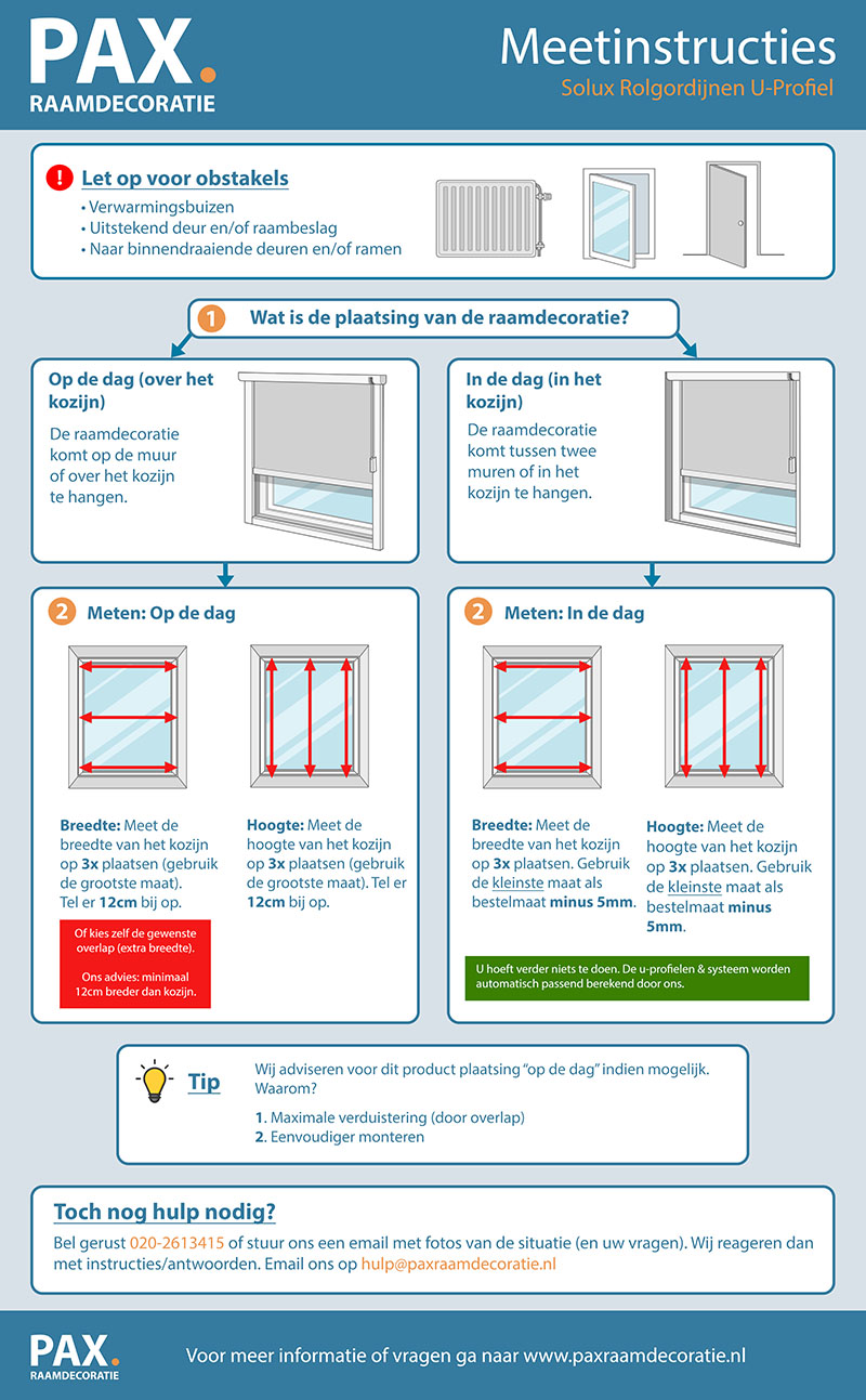 Het inmeten is simpel & eenvoudig. Volg onderstaande handleiding voor de juiste maten en wij doen de rest