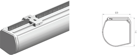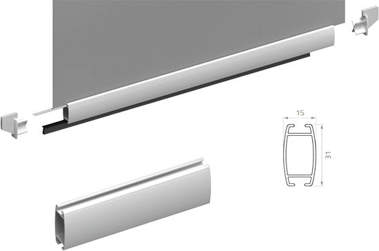 In het profiel van aluminium zitten ook borstels om het zoveel mogelijk te verduisteren. Het u-profiel bestaat uit 2 delen, een u-profiel en een afdekprofiel zodat de montage niet zichtbaar is.