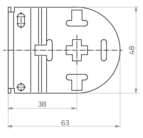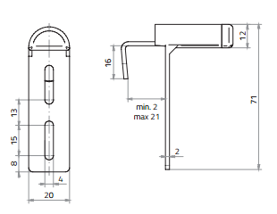 Hieronder een voorbeeld van de kiepkantelsteun (met plastic kapjes) met de bijbehorende afmetingen: