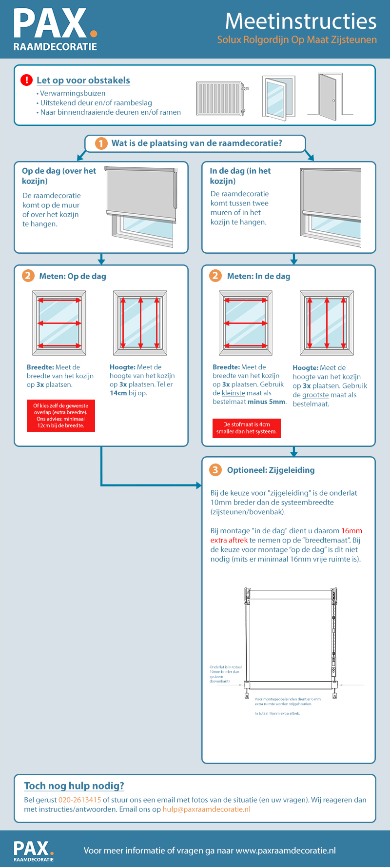 Let op: de stof is 35 mm smaller dan de opgegeven breedte (bestel breedte is systeembreedte).