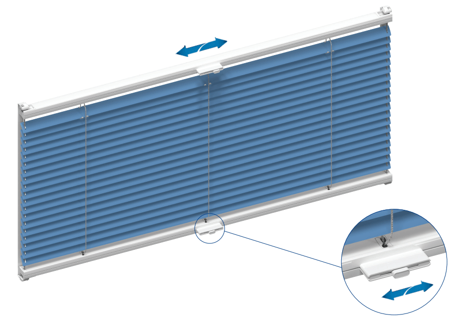 Kantel de lamellen van het jaloezie door het schuifje op de handgreep naar links of rechts te schuiven.